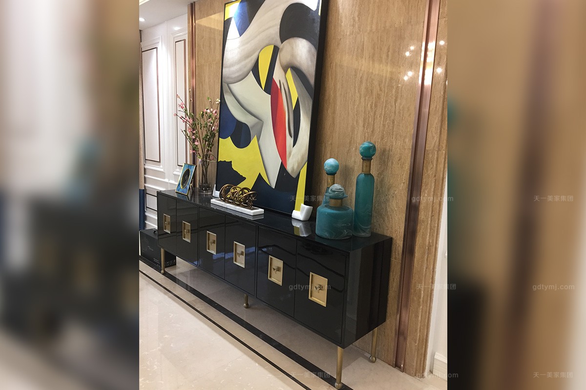 項目介紹:本案根據客人提供的要有現代輕奢感格調的想法,天一美家設計師結合時下流行的家具輕奢化趨勢,以后現代風格設計為主調,輔以現代時尚元素,使得家具產品風格呈現一種多變與多樣性,給人們帶來不一樣的時尚視覺沖擊。產品從設計到生產工藝,甚至每個細節,天一美家的工匠們精益求精,力求每件產品完成猶如如一件藝術品的到來。正因為如此,深受客戶的肯定。