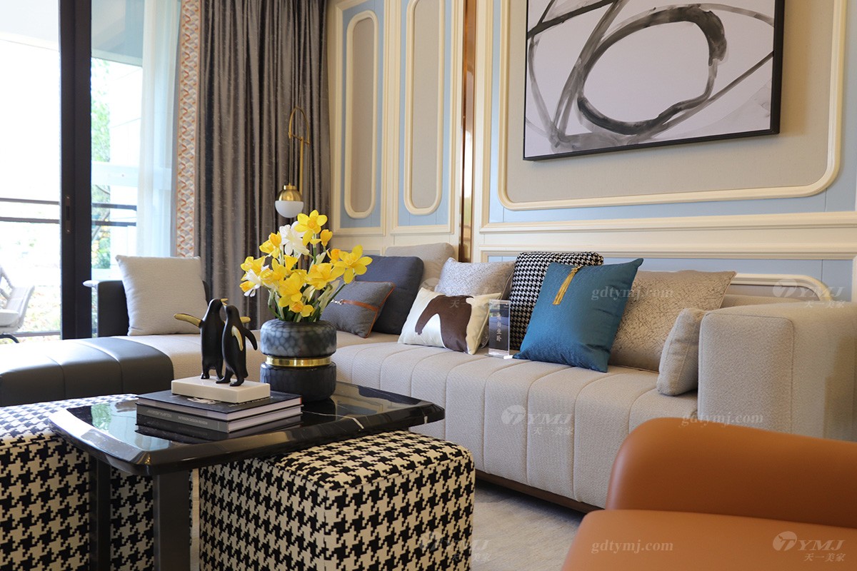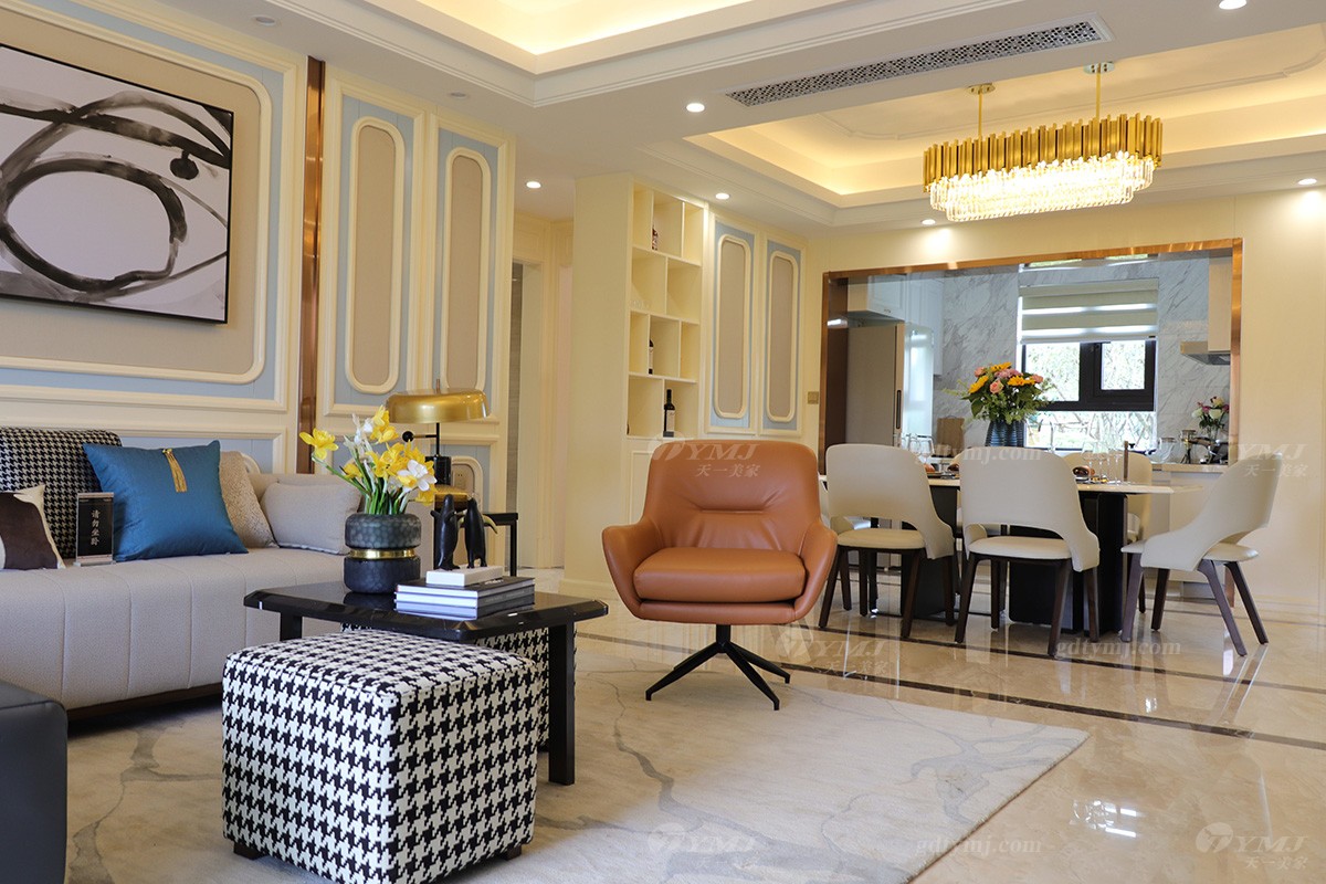 項目介紹:本項目戶型為一套平層樣板間,根據客戶的想法和要求,家具產品風格定位以現代時尚輕奢風為主,其中又帶點新中式風格元素,搭配一些類似分紅、橘色等暖色系的顏色,軟裝飾品方面搭配以清新、自然為主,以求整體營造出一種舒適溫馨、清新自然的居家體驗,很顯然,效果非常不錯,客戶很是喜歡。