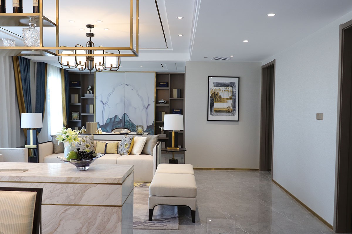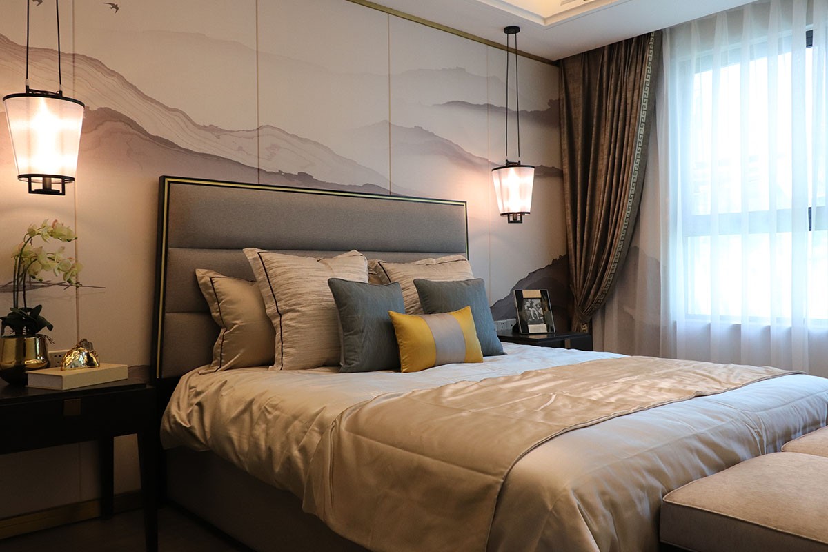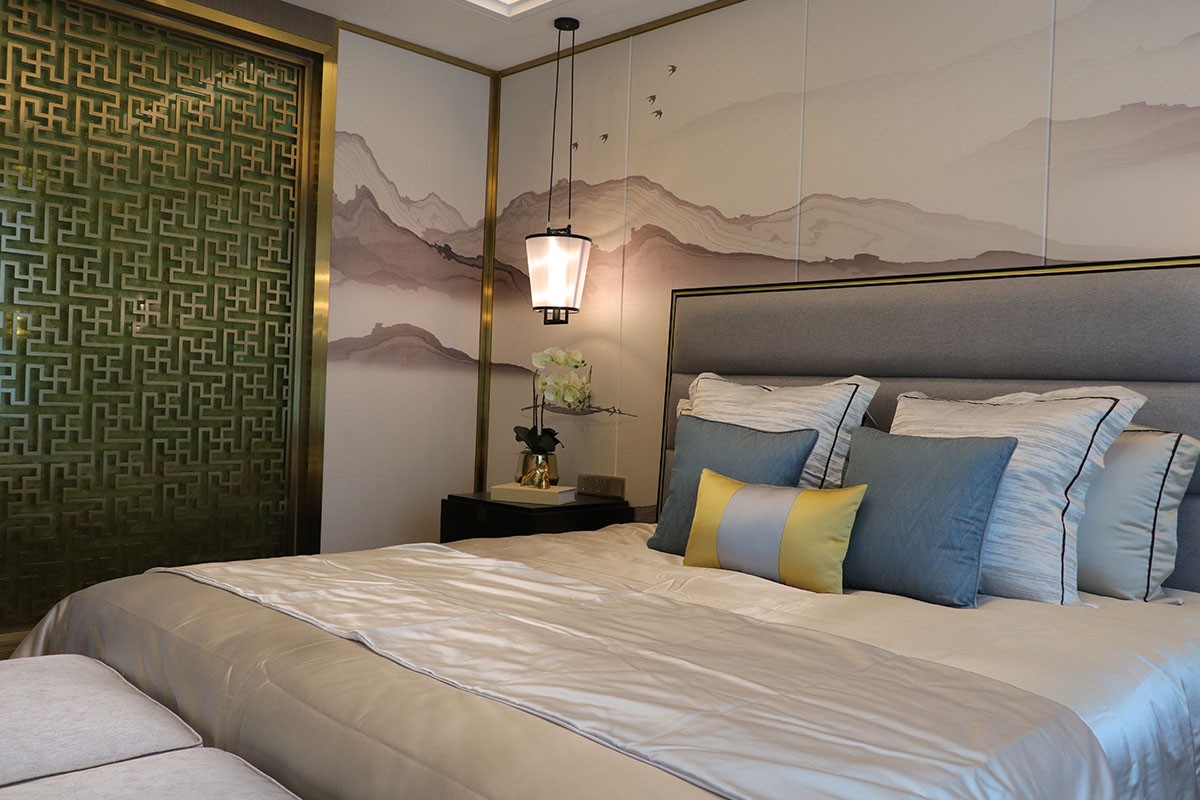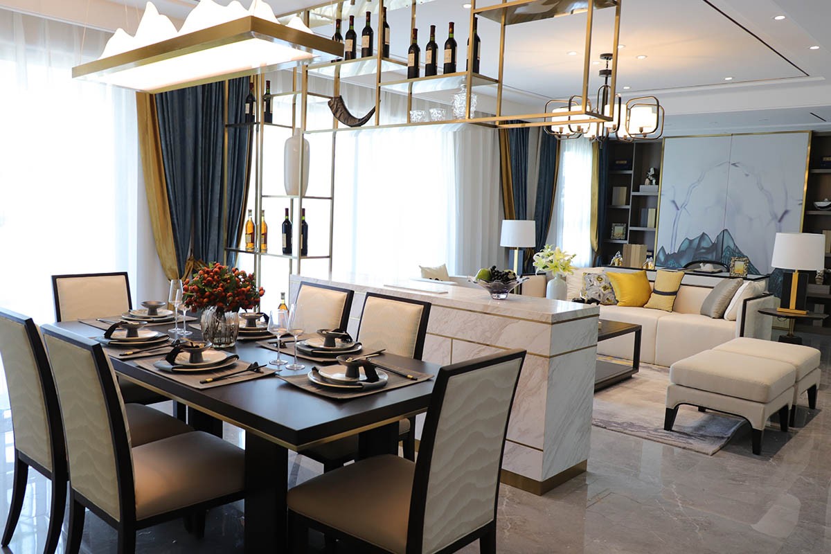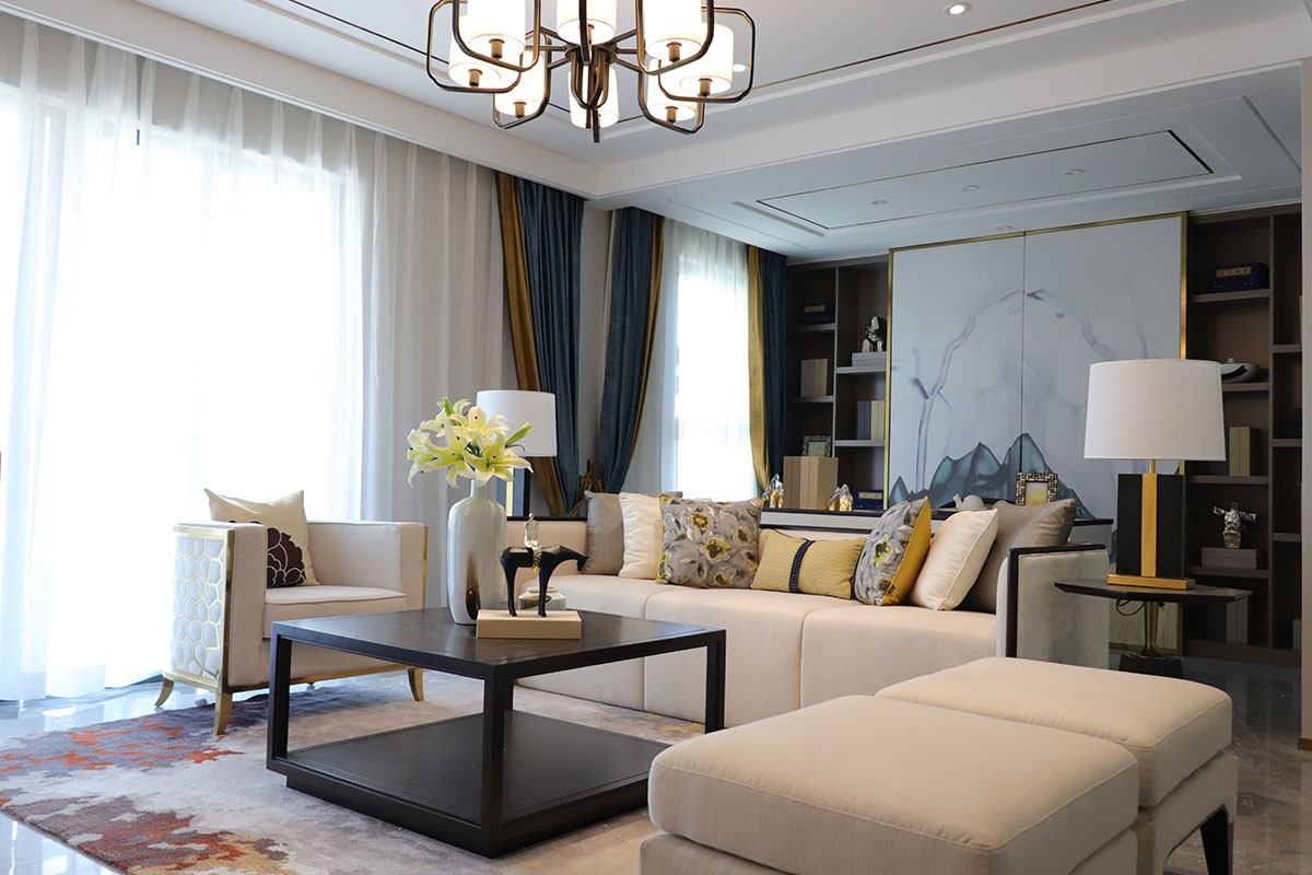 項目名稱:新中式、輕奢風樣板房家具、軟裝飾品工程--信陽天福山河官邸項目案例展示!