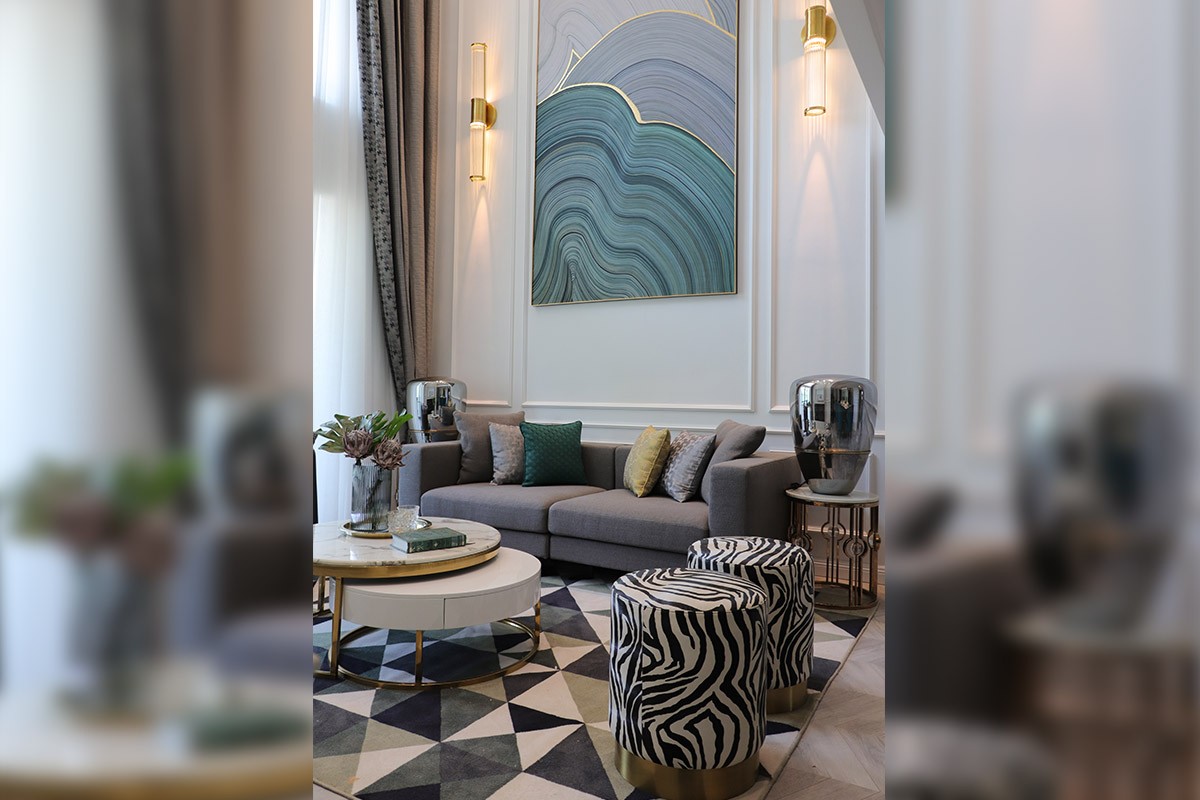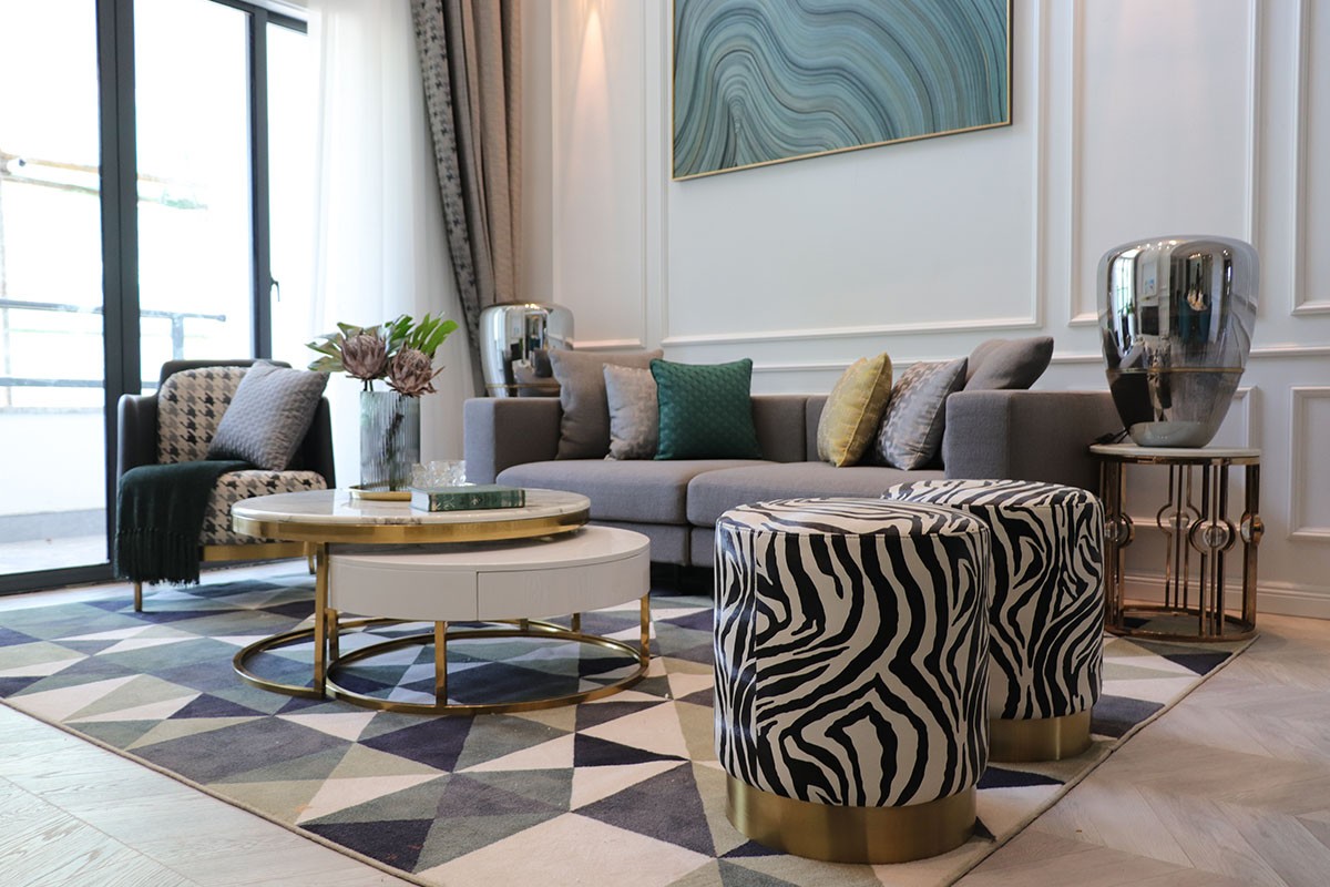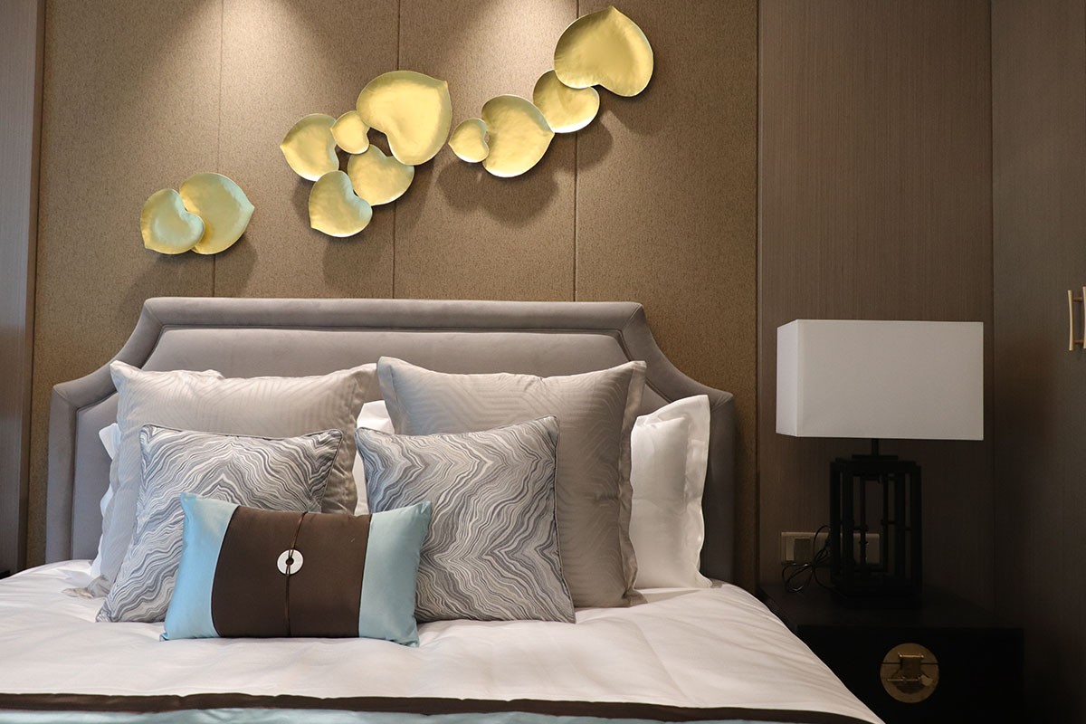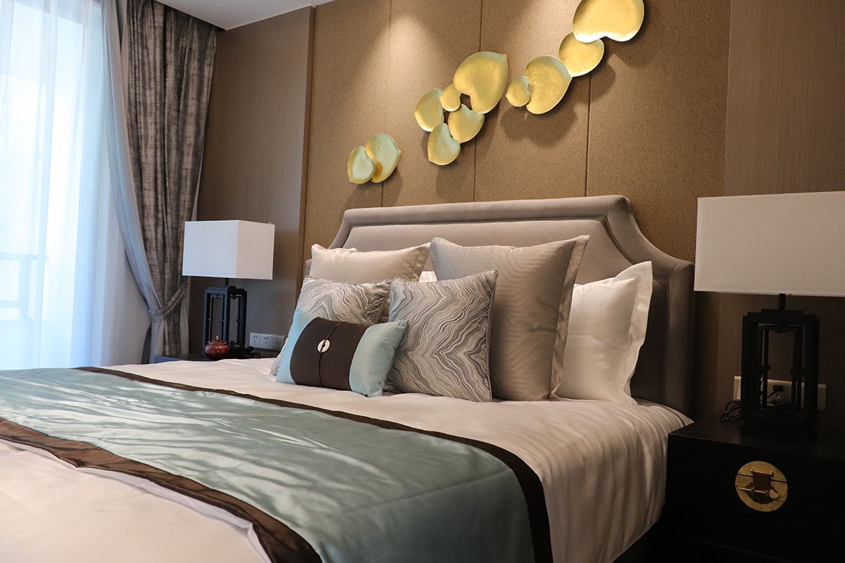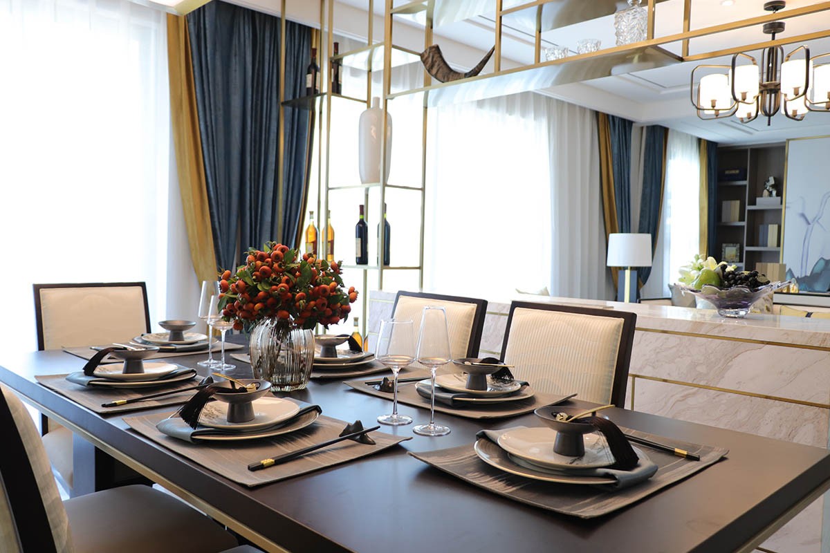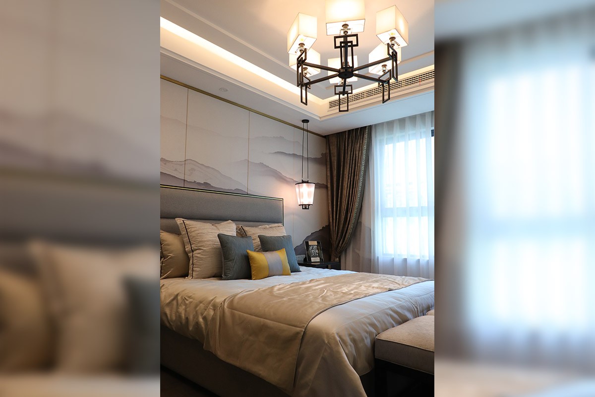 項目名稱:新中式、輕奢風樣板房家具、軟裝飾品工程--信陽天福山河官邸項目案例展示!