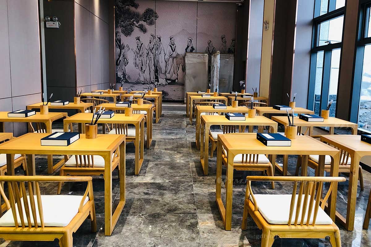 項目介紹:本案是以現代簡約風格作為設計理念,以黑色、白色為基調色,搭配咖色、藍色、黃色猶如點睛之筆,讓個整空間色彩富有層次靈動感,簡約而不平凡,白色時尚的洽談椅、黑色的洽談桌,顯得格外清爽干凈,讓每一位洽談的客人有一種黑白分明、眼前一亮的感覺,娛樂休閑區的中式書桌、書椅,濃厚傳統文化象征的山水背景墻面,猶如穿越回古代私塾教學的場景,甚是有趣,總之,整個空間很好的融合了酒泉當地文化和現代時尚元素,深得客戶肯定!