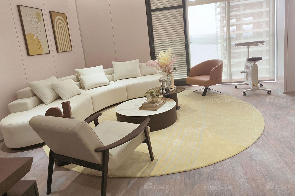 大氣柔美的弧形沙發,和整個空間的色調,都顯得十分柔和