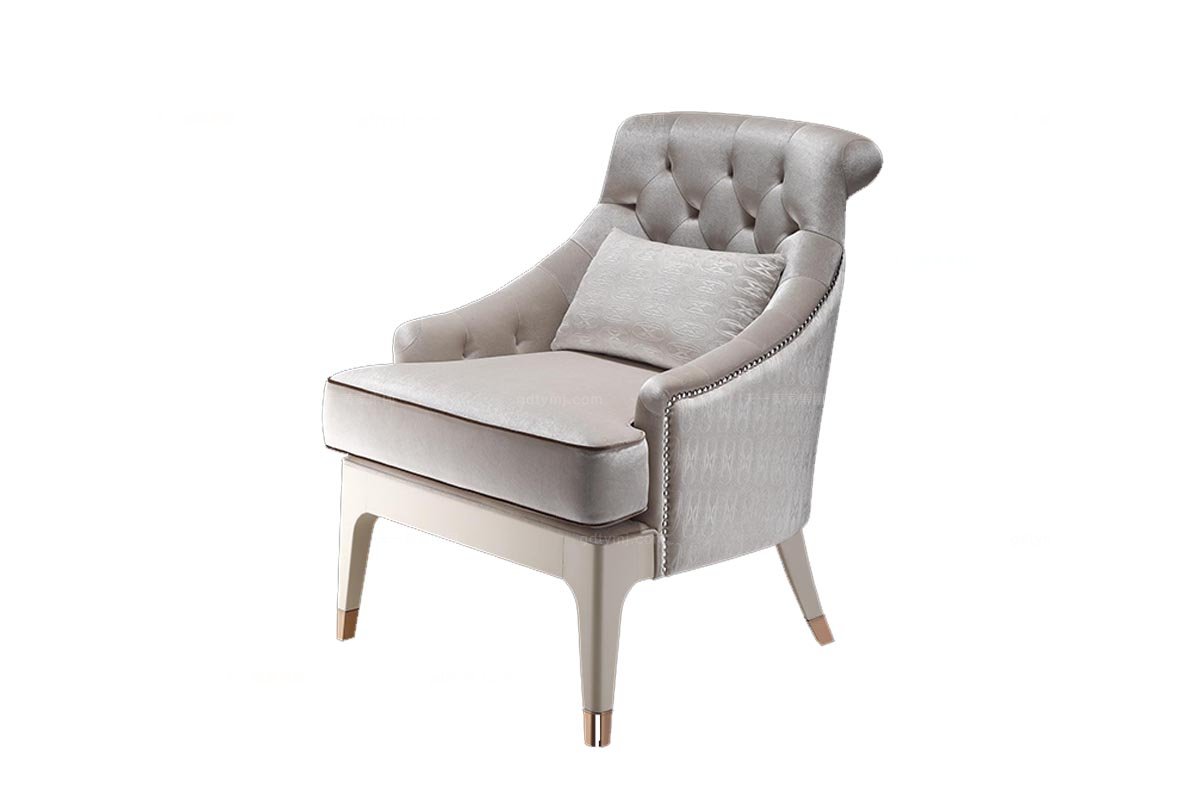 酒店別墅家具米白色絨布拉點休閑椅