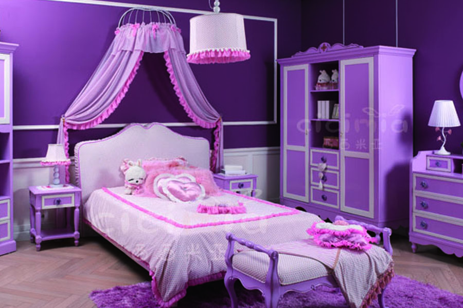 高端時尚可愛兒童家具玫紅色臥室家具組合