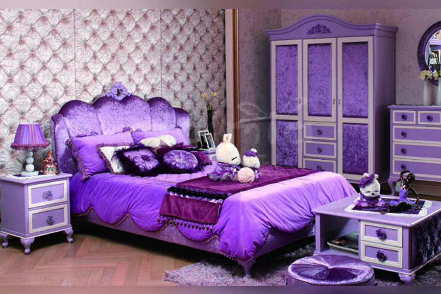 高端別墅兒童家具品牌玫紅色公主床