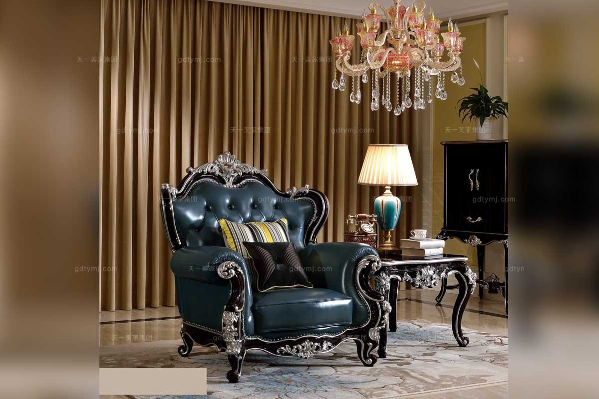 高端家具品牌法式雕花真皮休閑椅