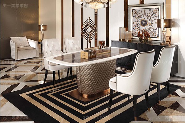 名貴后現代輕奢家具客廳餐桌椅山水紫拼面板餐桌白色絨布拉點餐椅