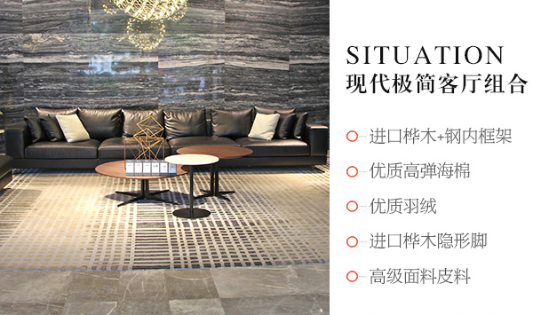 意式極簡奢家具現代客廳進口樺木茶幾真皮軟客廳包沙發組合