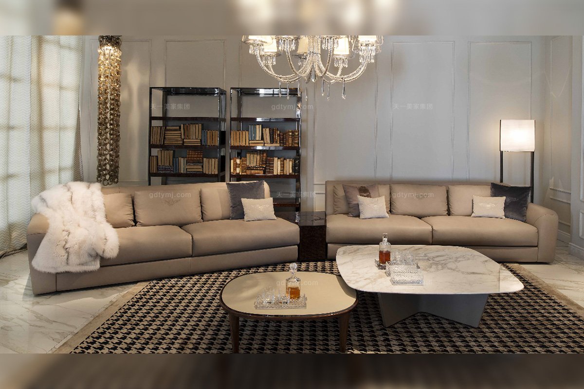 高端別墅豪宅奢華家具品牌高彈海棉優質真皮多人位轉角沙發