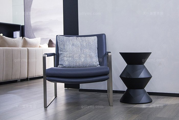 意式極簡元素現代簡奢家具藍色真皮休閑單椅