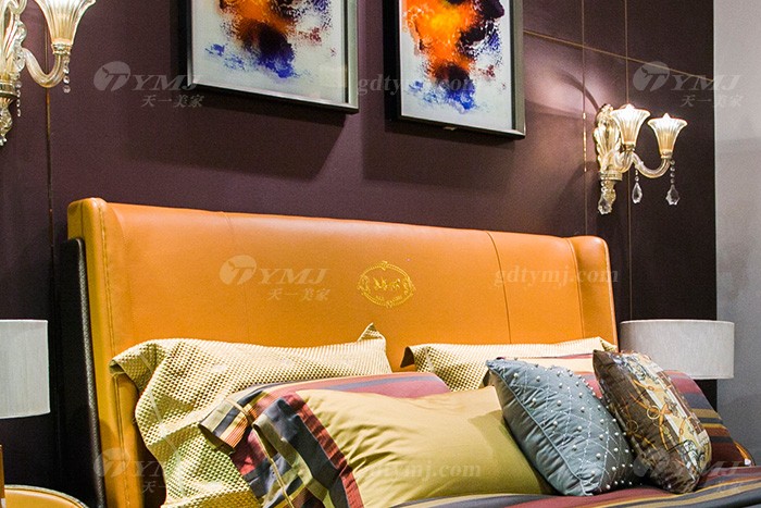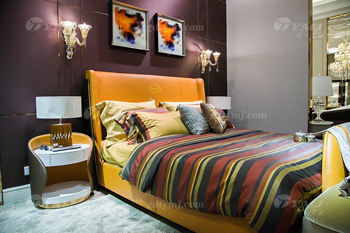 高端別墅豪華家具輕奢后現代品牌臥室愛馬仕橙真皮大床