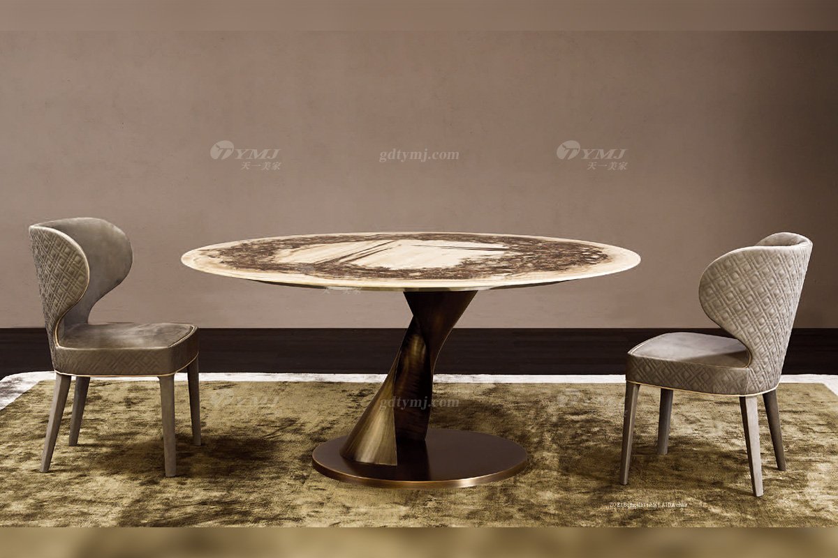 時尚輕奢家具100純進口意大利家具品牌藝術手繪面五金底餐桌椅