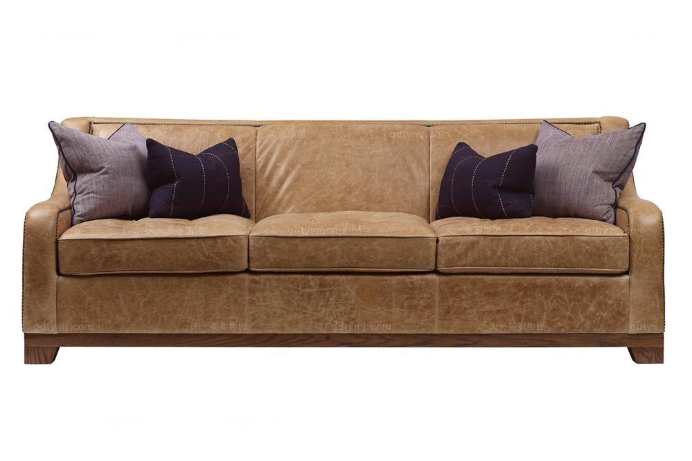 高端品牌美式黃色真皮雙位沙發
