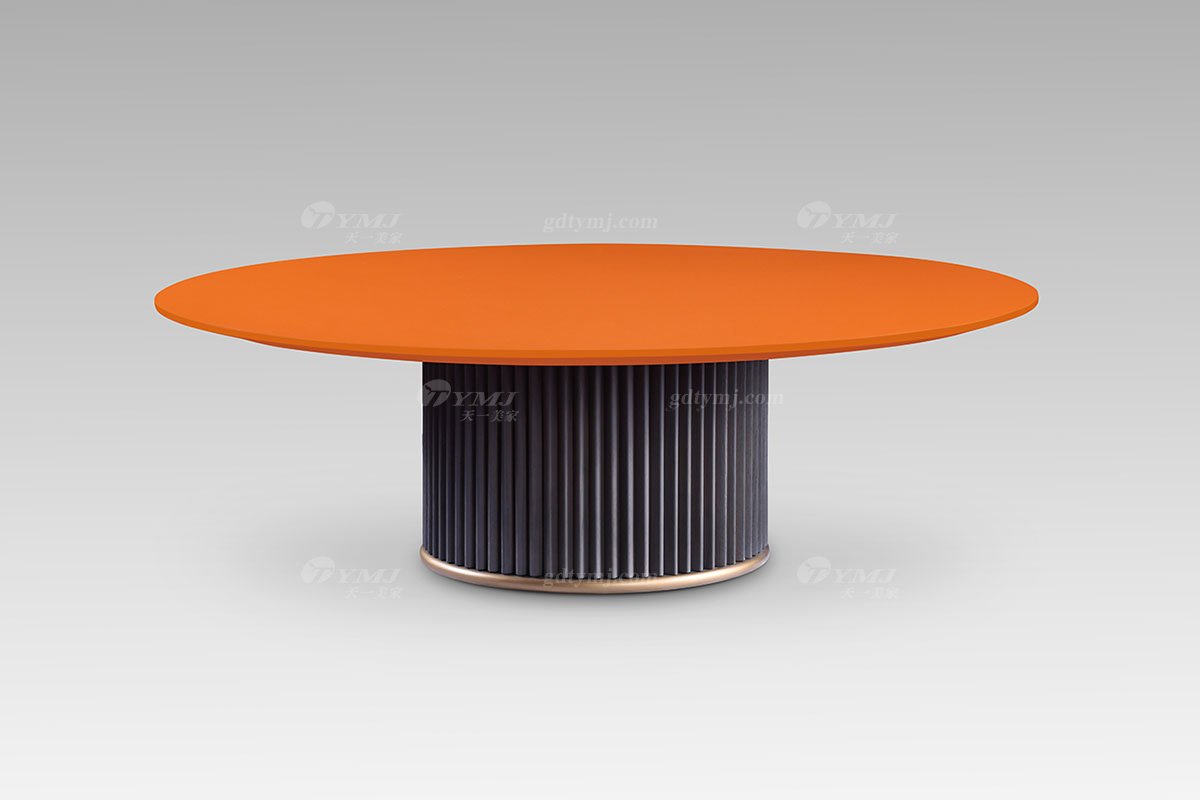 現代輕奢時尚高檔家具灰橡色+愛馬仕橙色大圓幾