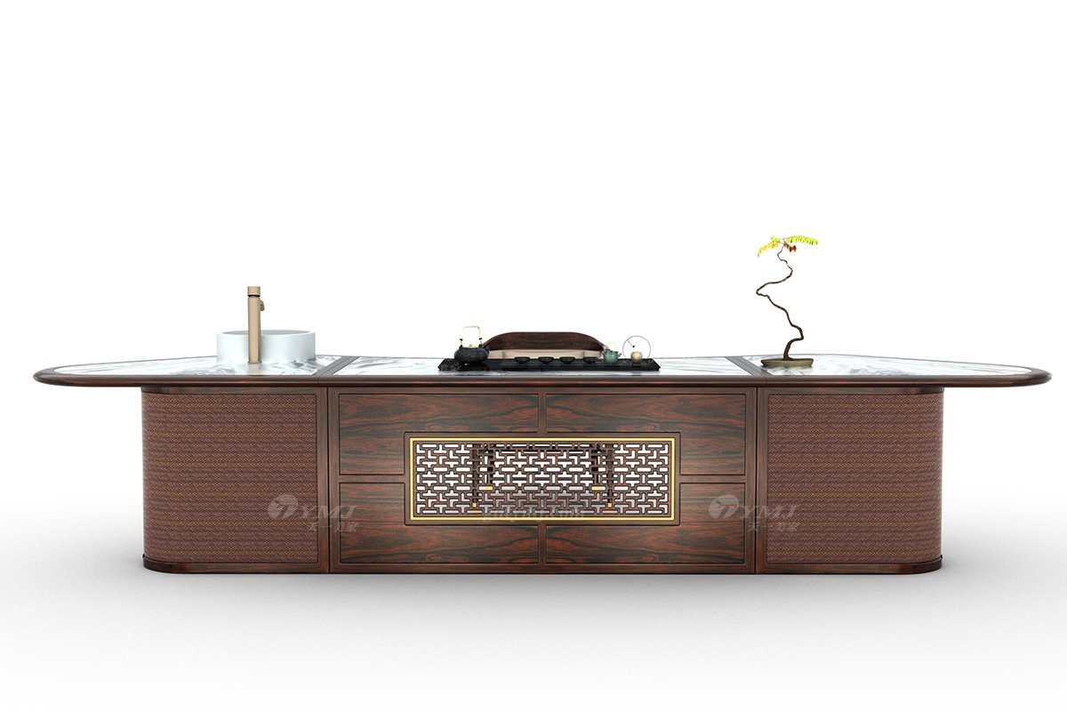 新中式高端會所別墅家用家具時尚輕奢全紅木黑酸枝實木+烏金石茶臺