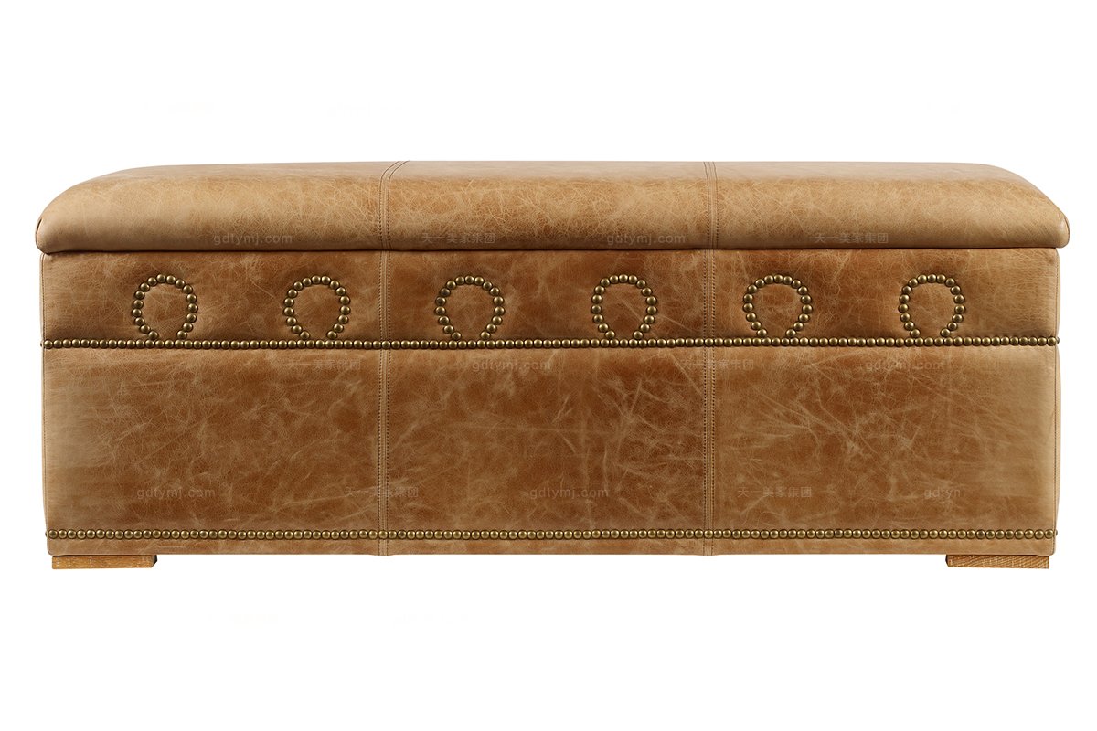 高端品牌美式真皮床尾凳