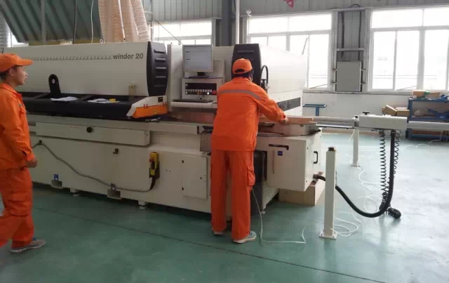 在A區(qū)里只見成排的車間里,為數(shù)不多的工人正在忙碌著,正趕制一筆3000萬元的訂單。生產(chǎn)設(shè)備均采用德國、意大利進(jìn)口的自動化生產(chǎn)設(shè)備,人工需求量少,整個天一窗業(yè)公司包括設(shè)計研發(fā)、生產(chǎn)一線、管理人員160多人,年生產(chǎn)能力可達(dá)50萬平方米,主要研發(fā)、生產(chǎn)鋁木窗、木包鋁、斷橋鋁合金、幕墻設(shè)計等中高端產(chǎn)品。
