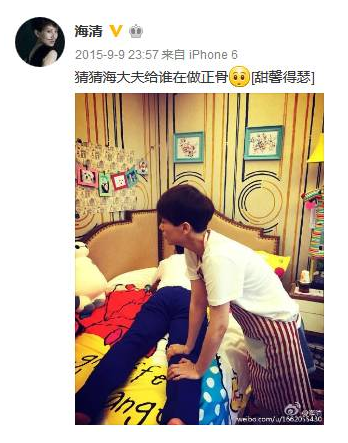 尤為注意的是,海清似乎對這款米黃色的兒童床尤為偏愛,在海清致謝恩師的微博中,海清曾在這張床上為黃磊做腿部按摩。