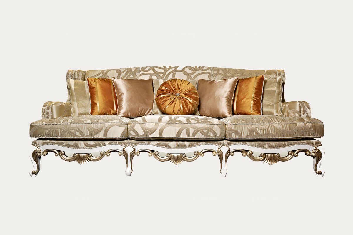 這款書桌延續世爵系列的設計理念,用C形、S形和渦旋狀曲線紋飾蜿蜒反復,精心設計的貝殼狀拉手,鋸齒形莨苕葉鏤空雕刻紋飾,局部運用香檳色意大利壓花特紋皮鑲嵌,并以24K金箔裝飾,盡顯極致奢華、高貴典雅。
