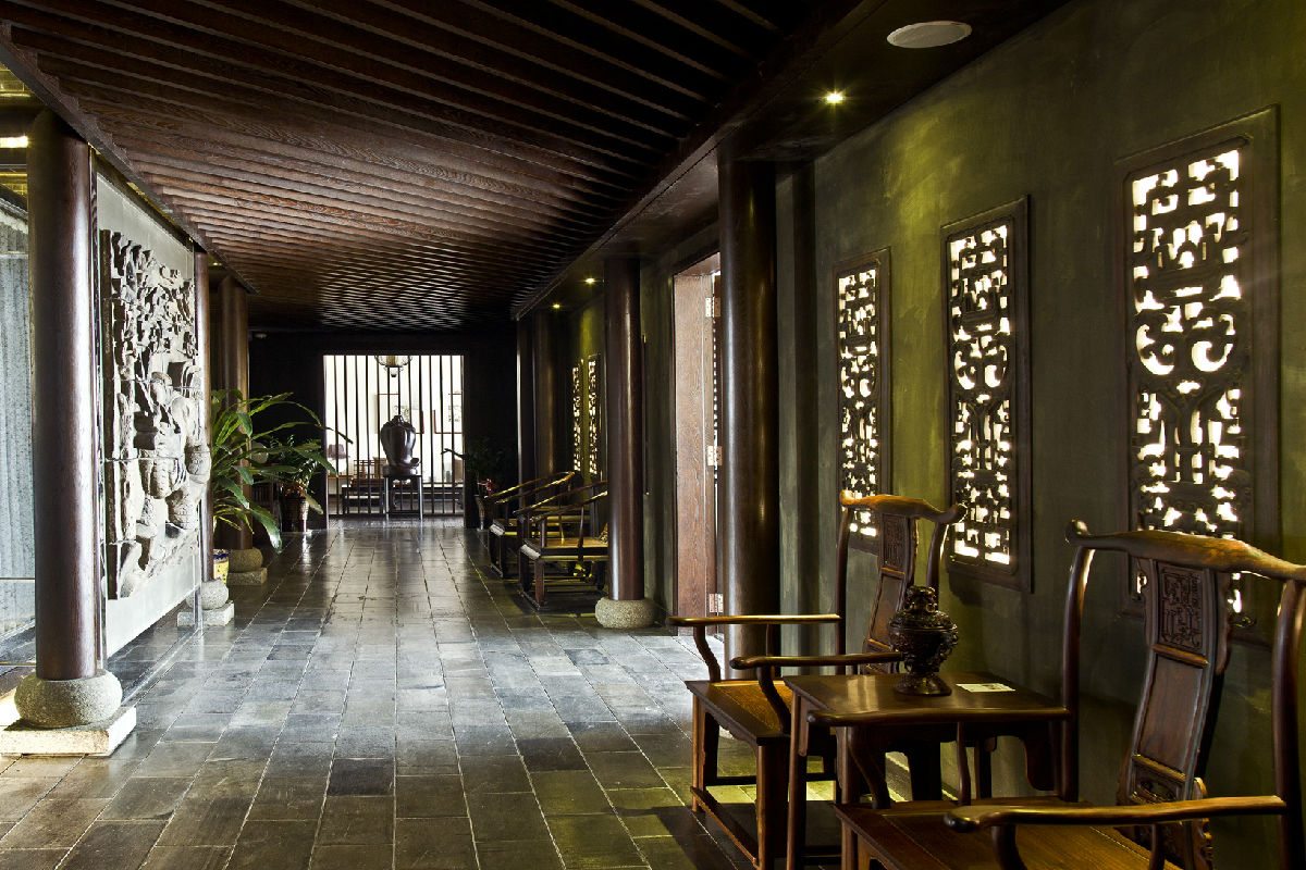天壹會會所位于集團總部大廈六樓,曲徑回廊,格調典雅,不乏時尚氣息的中式裝潢,以名貴明清紅木家具為主,混搭以歐美經典家具,設有多個宴會包房、品茗室、紅酒窖、雪茄吧、中式元素KTV等高尚餐飲、休閑、娛樂設施和中堂、中式書房等傳統民居雅間。"縱無茂林修竹、清流激湍,卻有滿堂嘉木、一室幽蘭;最宜樂山樂水、見仁見智,且喜談商論道、近悅遠來"。會所入目皆是獨具匠心的陳設布置,充分體現了以客為尊,以商會友!