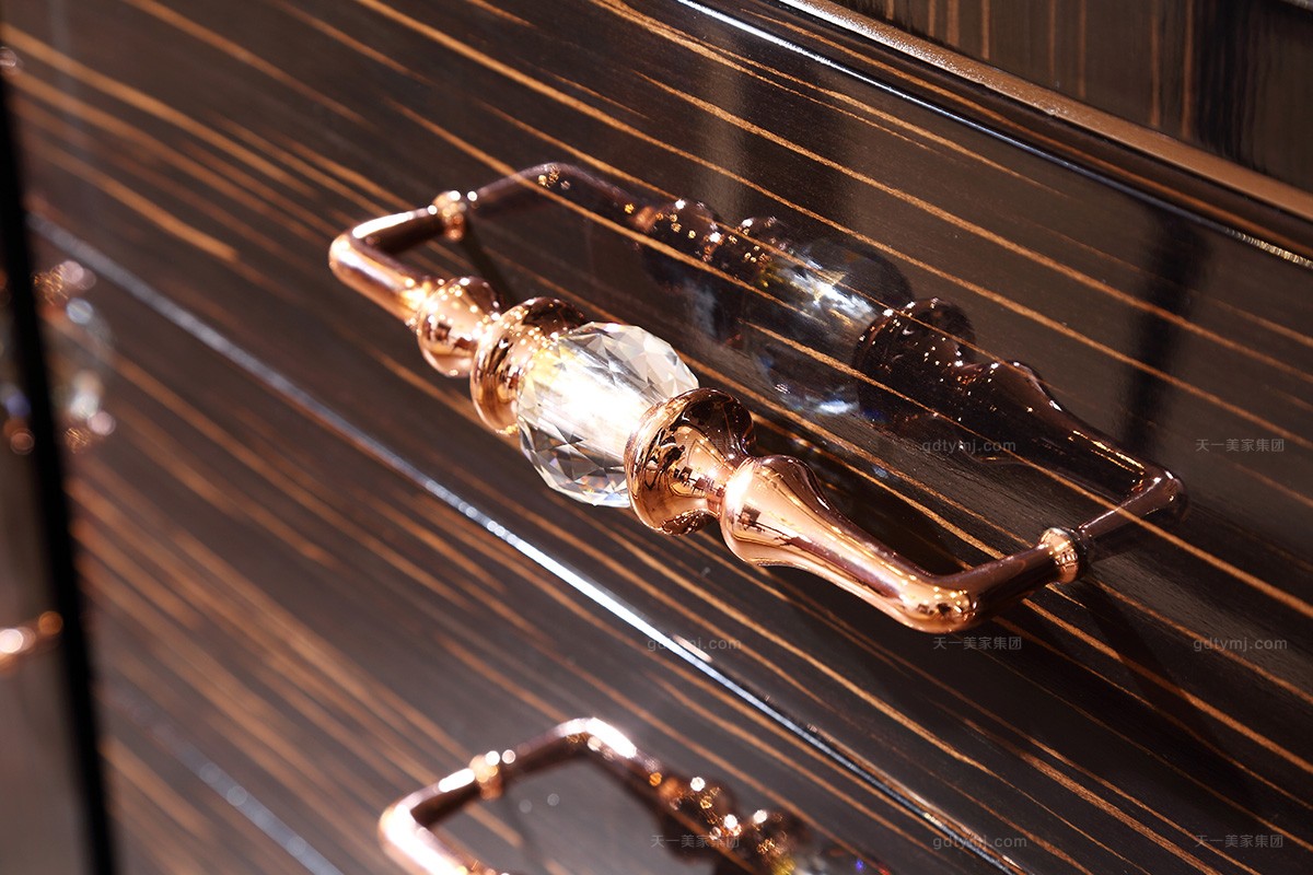 天一美家輕奢后現(xiàn)代奢華整體家具設(shè)計(jì)是獨(dú)特的,從甄選世界各地優(yōu)質(zhì)的五金、水晶、石材、布藝、皮革、木質(zhì)多元素的組合恰如其分,到不同質(zhì)材、肌理的呈現(xiàn)統(tǒng)一到優(yōu)雅的知性色調(diào)中,散發(fā)濃郁的藝術(shù)氣息,獨(dú)具的設(shè)計(jì)概念和至臻的工藝品質(zhì),恰恰讓使用者有一種內(nèi)心的安謐感。